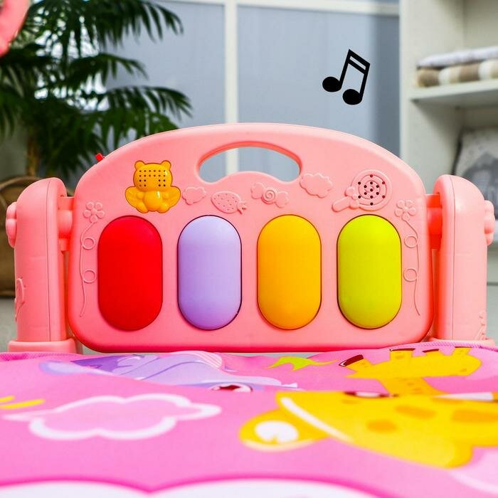 Музыкальный коврик ZABIAKA развивающий со звуком, розовый