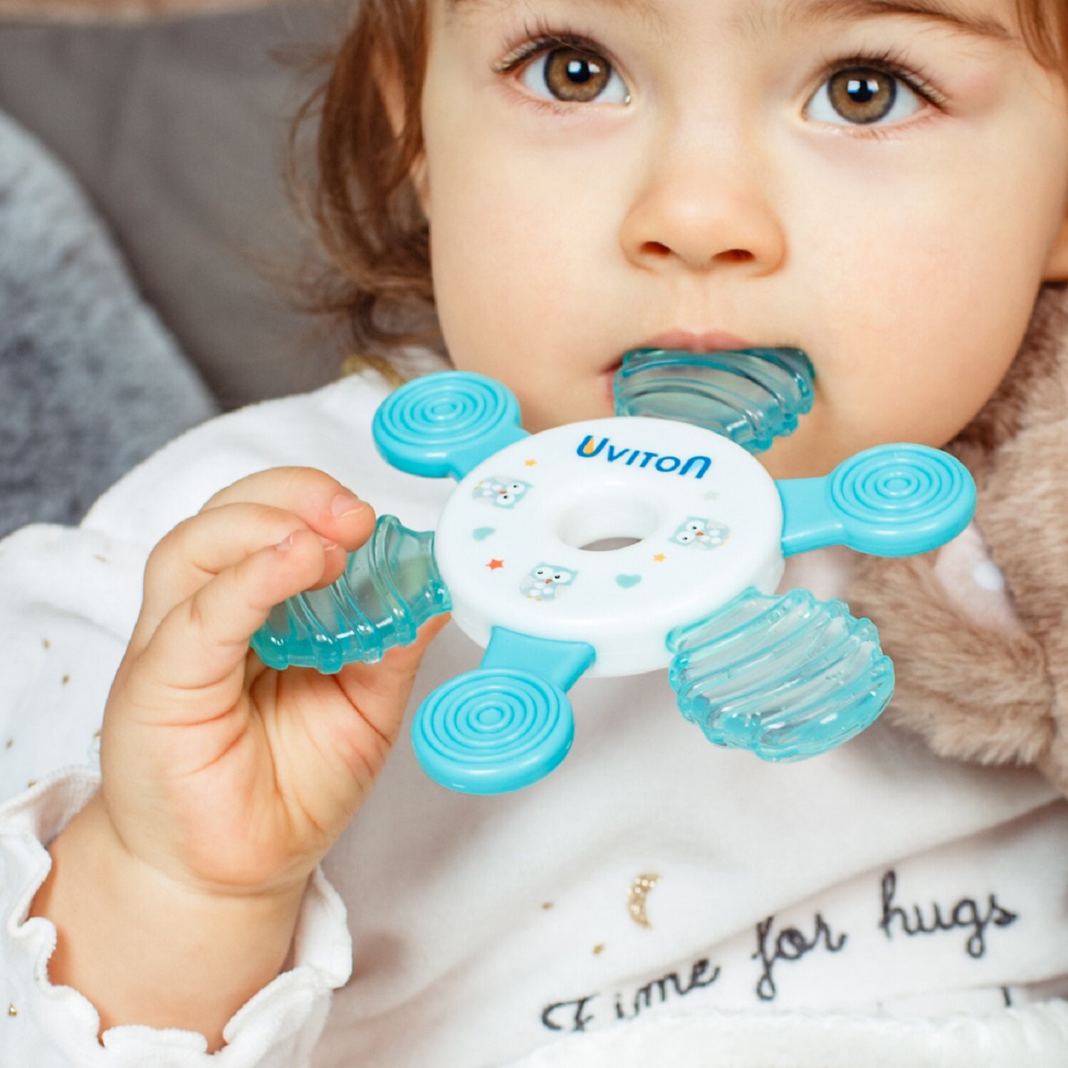Игрушка погремушка пищалка для детей с прорезывателем Зайка от бренда Uviton