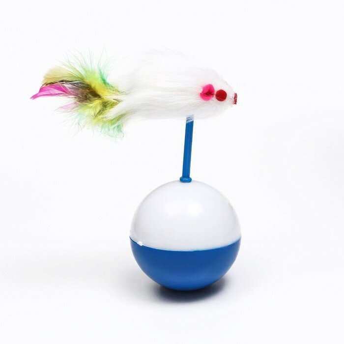 Мышь-неваляшка из искусственного меха на шаре, 11 х 6 см синий/белый информация: