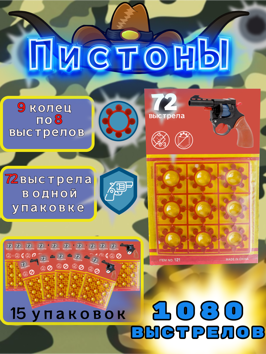 Пистоны 8-зарядные для револьвера и пистолета, 10 пачек