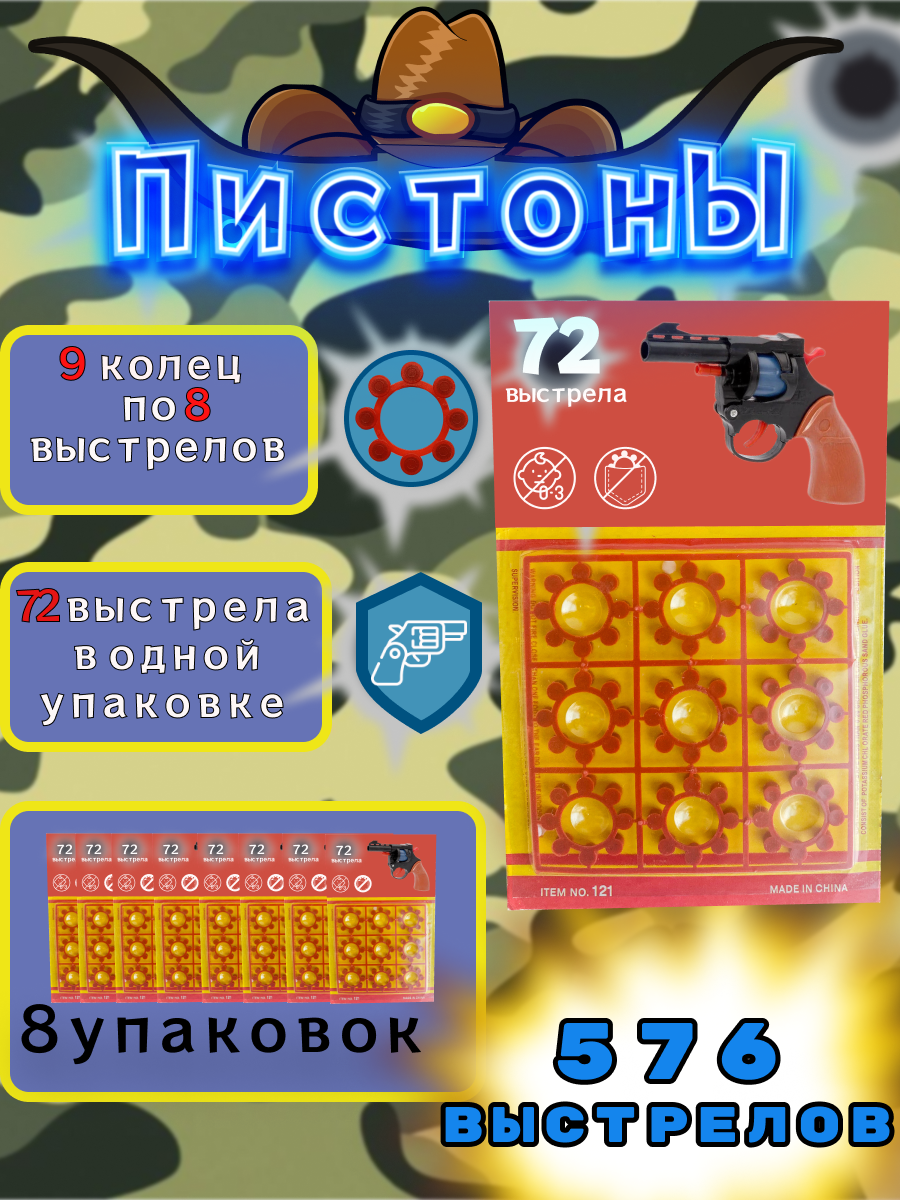 Пистоны 8-зарядные для револьвера и пистолета, 10 пачек