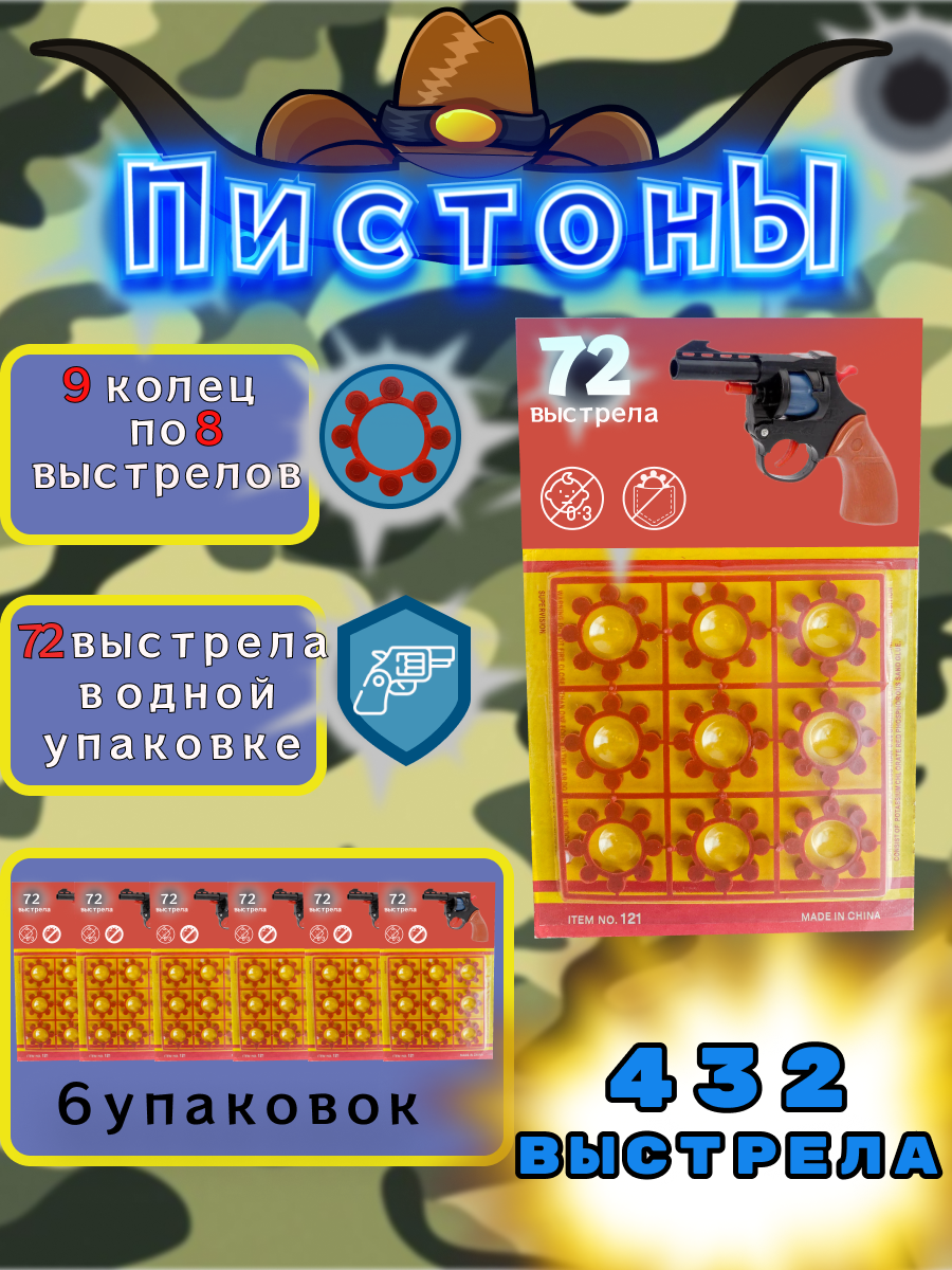 Пистоны 8-зарядные для револьвера и пистолета, 10 пачек