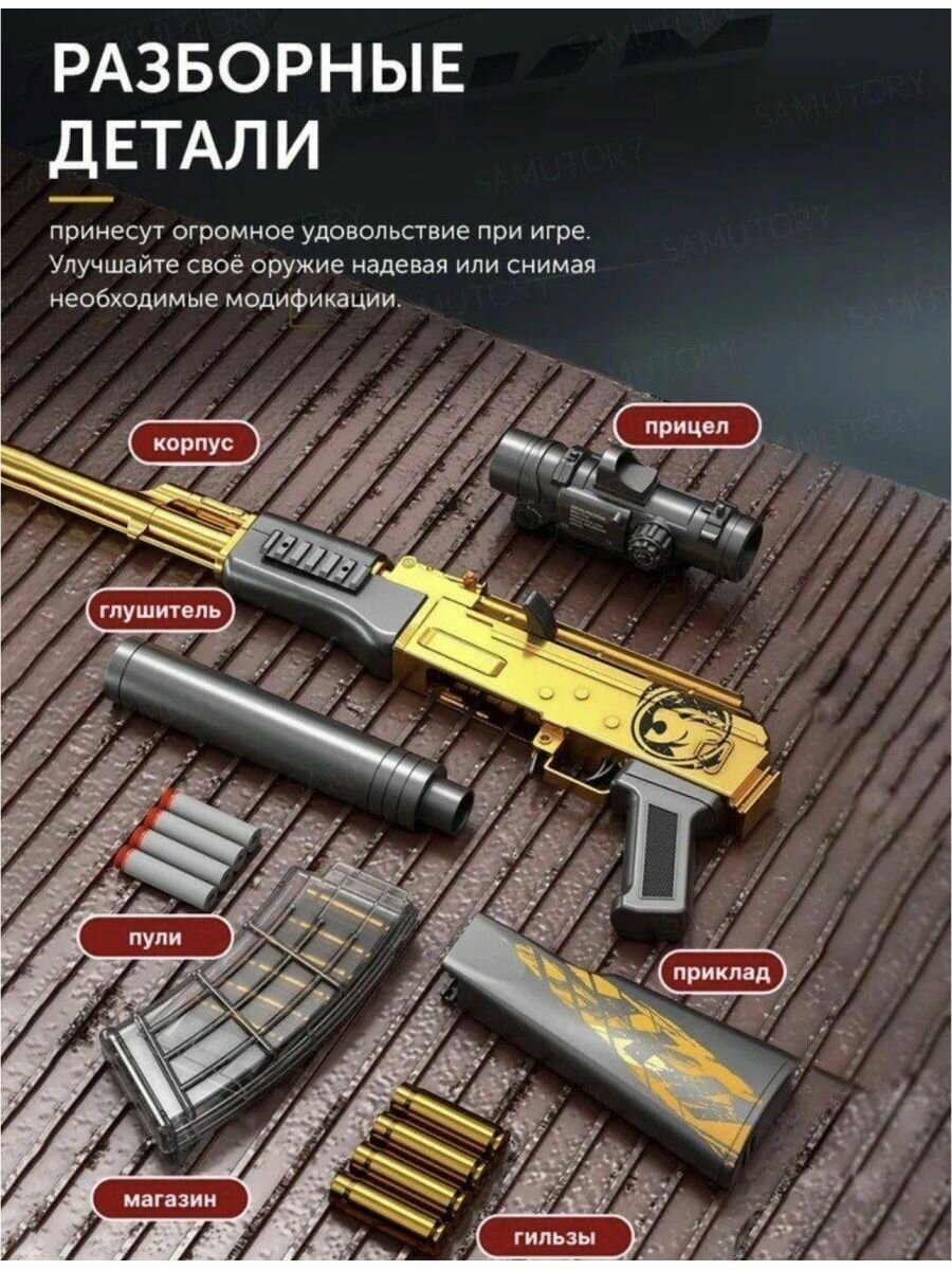 Игрушечный автомат Калашникова АК-47 AKM оригинальный цвет мягкие пули и выбрасываемые гильзы 2 000 ₽