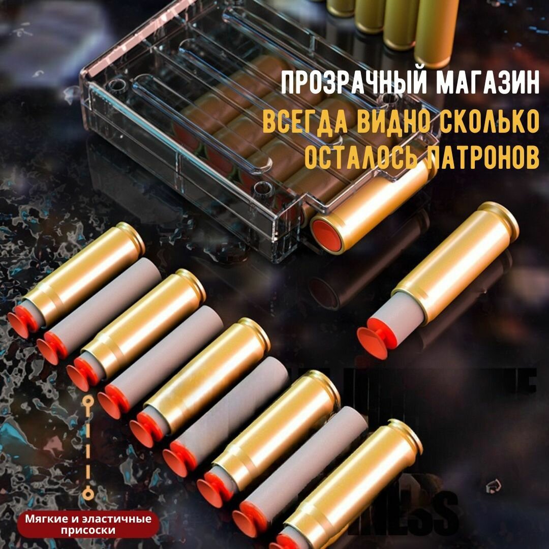 Игрушечный дробовик Нерф с прицелом, выбросом гильз и комплектом мягких патронов / бластер с мягкими пулями