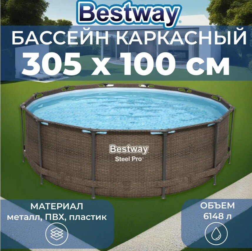 Бассейн каркасный Bestway Steel pro 305х100 см, 6148 л информация: