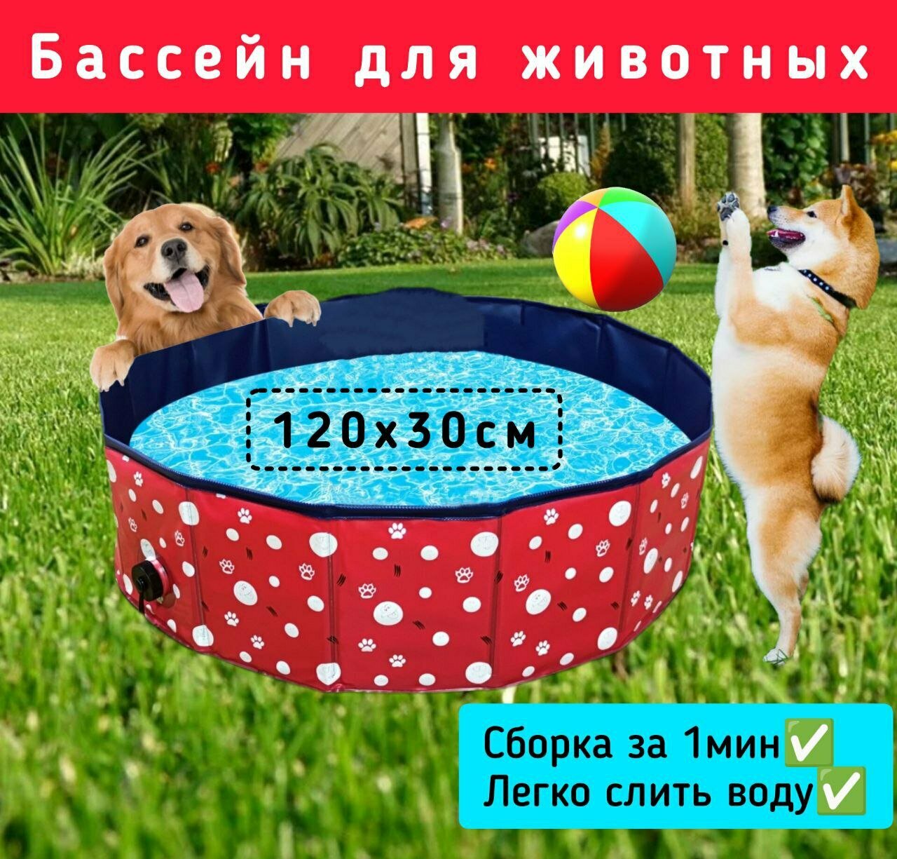 Бассейн для собак, красный информация: