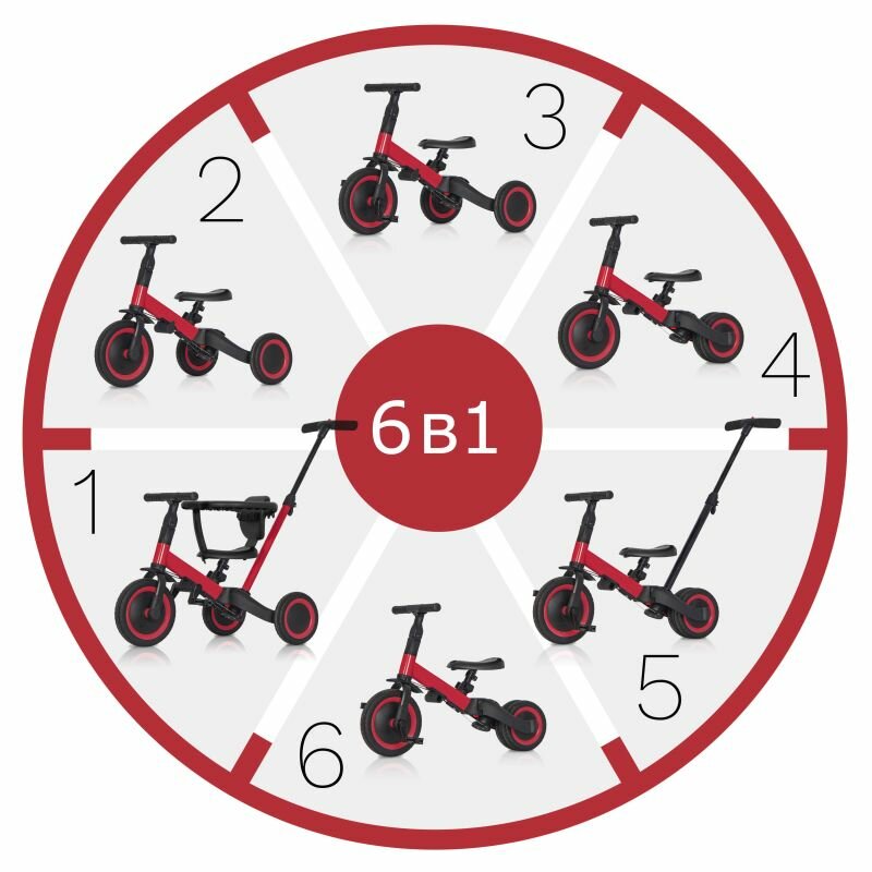 10 цен на Детский беговел-велосипед 6в1 с родительской ручкой, красный - TR008-RED (TR008-RED)
