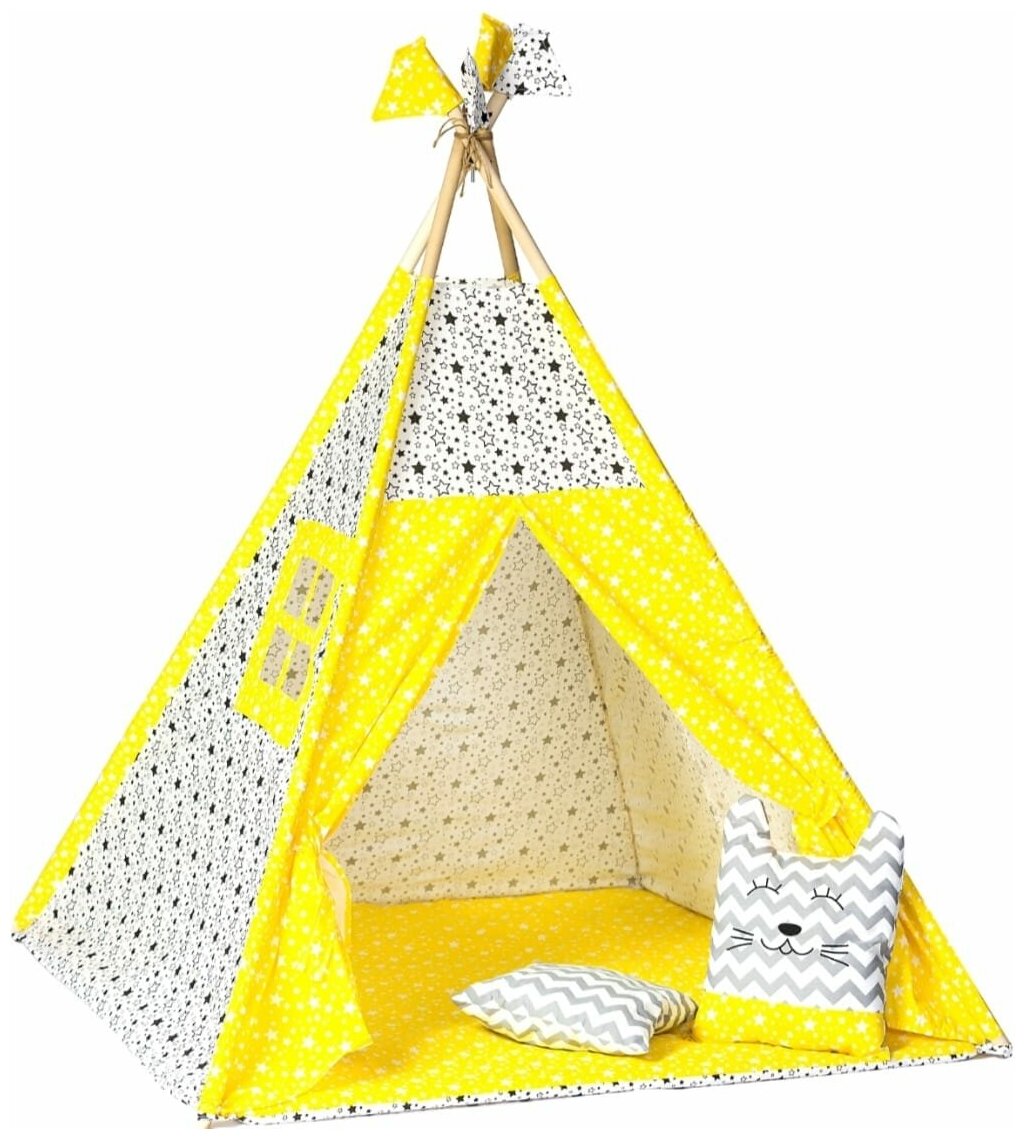 Детский Вигвам с ковриком, окошком, подушкой-игрушкой, подушкой, флажки - 4 шт. и системой антискладывания "Звездопад" информация: