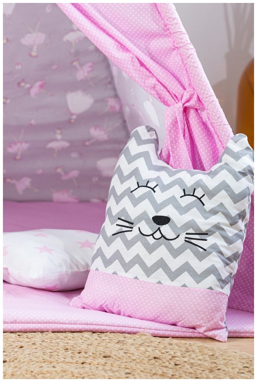 Детский Вигвам/палатка/домик с ковриком, окошком, подушкой-игрушкой, подушкой, флажки и системой антискладывания "Балеринки" информация: