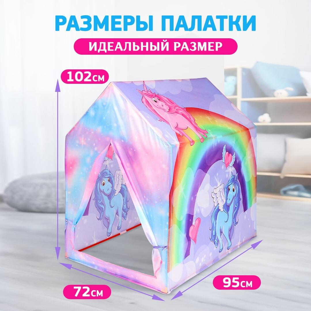10 цен на Палатка детская игровая в коробке. Домик шатер для детей 102х95х72 Вигвам для девочек единороги 8192