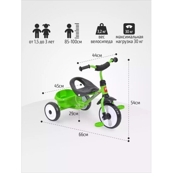 Трехколесный велосипед Werter Berger Trike XG 11214-3 зеленый-черный информация: