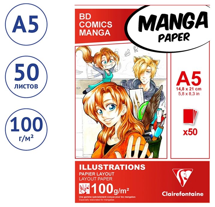Скетчбук для маркеров 50л., А5 Clairefontaine Manga Illustrations, на склейке, 100г/м2 ( Артикул 320261 ) информация: