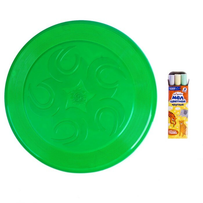 Летающая тарелка, 24 × 24 × 2,5 см, цвет зелёный + мел в подарок информация:
