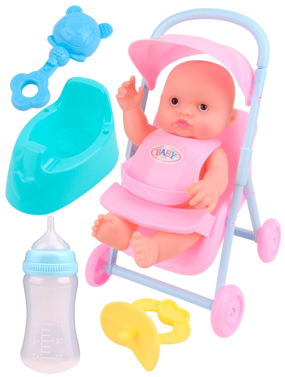 | Комплектация | бутылочка, горшок, коляска, пустышка |