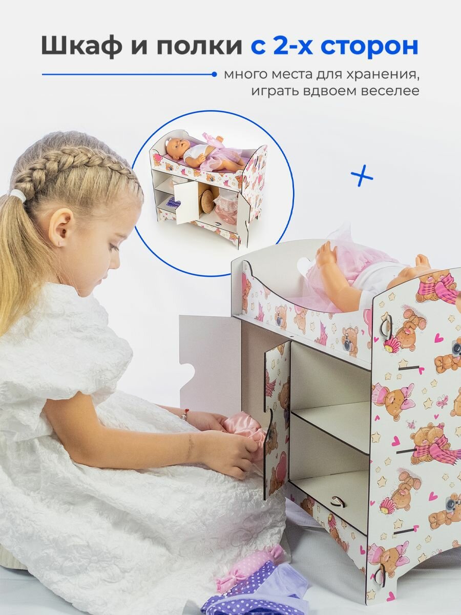 10 цен на Кроватка для кукол до 45 см "Мишки" со шкафом и полками, 2-х сторонняя