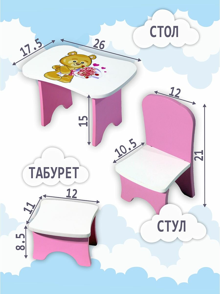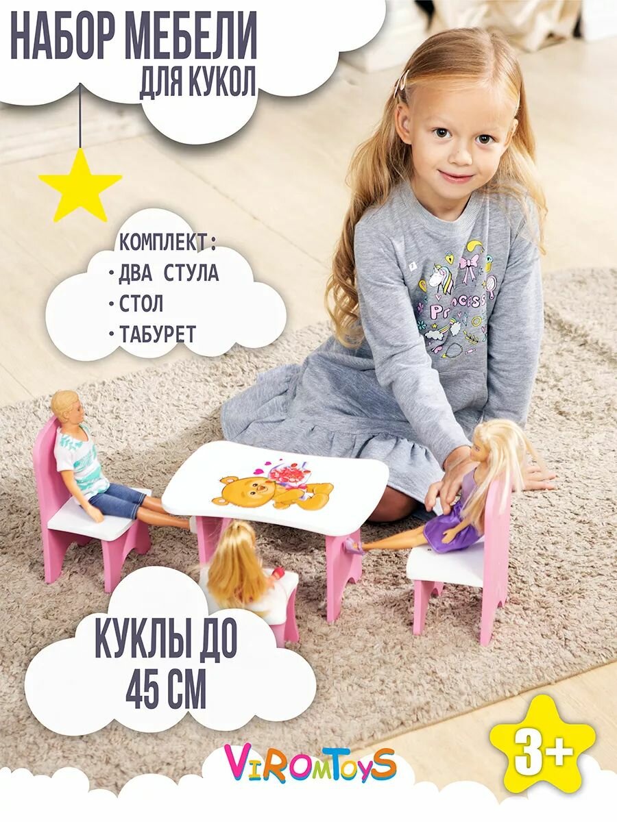 10 цен на Кукольная мебель для барби, набор стульчик , стол, табуретка