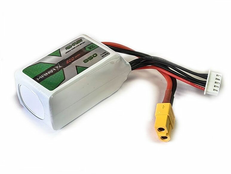 Отзывы на Аккумулятор ManiaX Eco LiPo 14.8V 4S1P 850mAh 30C с разъемом XT60