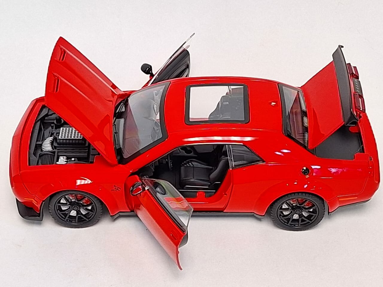Машинка Dodge Challenger 1:24 металлическая, с клаксоном, свет, звук, цвет красный