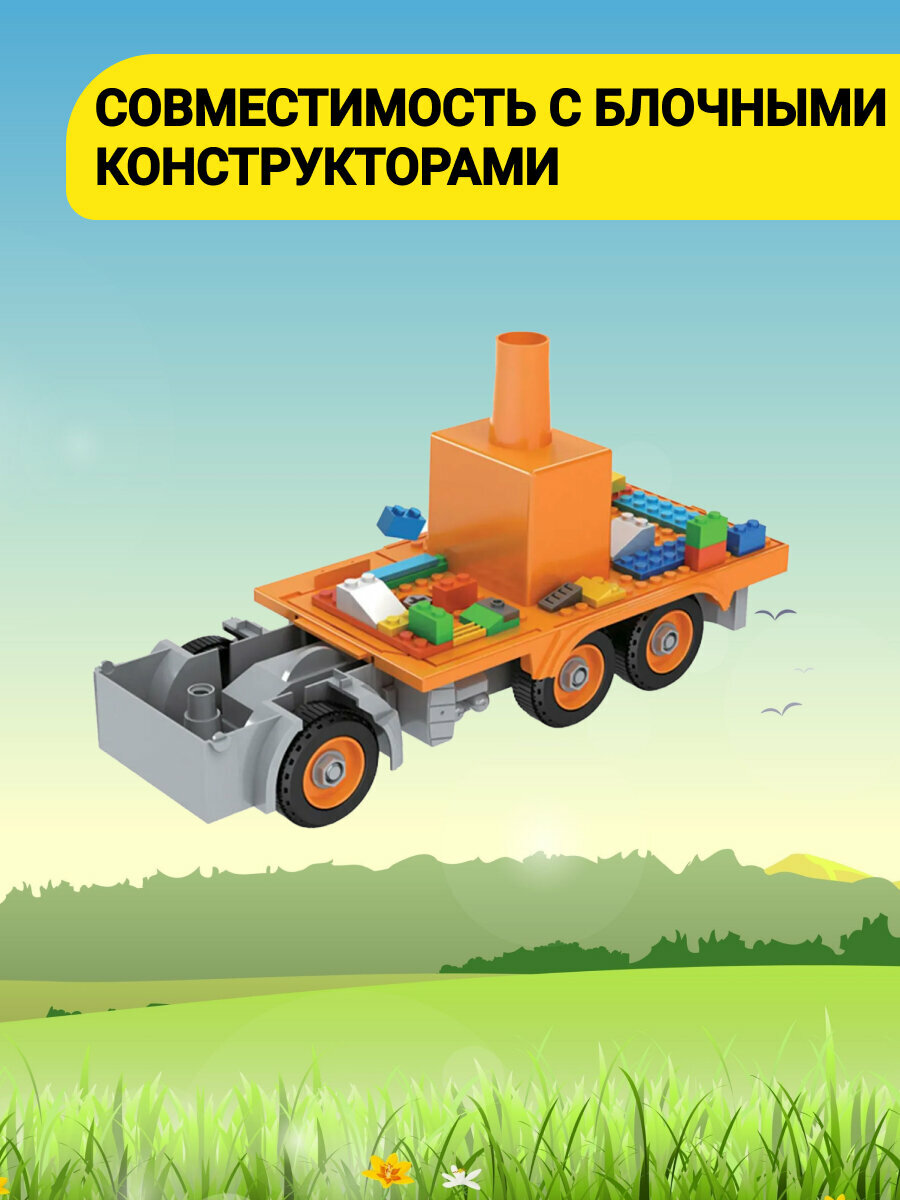 | Комплектация | Функциональный конструктор в виде машины,подвижные детали, возможность сборки- разборки, отвертка в комплекте, совместим с блочными конструкторами, свет, звук. |