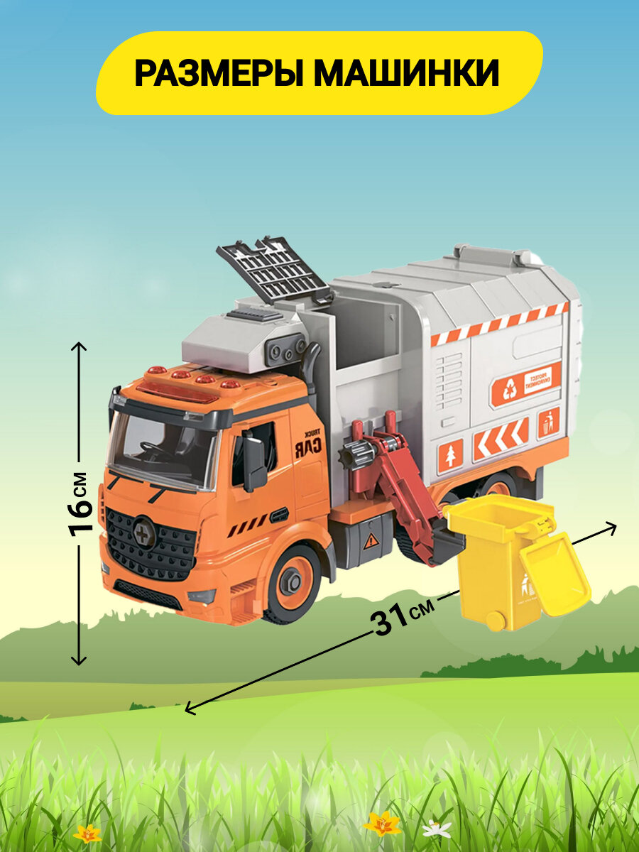 10 цен на Машинка детская конструктор мусоровоз, игрушка Funky Toys, фрикционный, звук, свет, 1:12