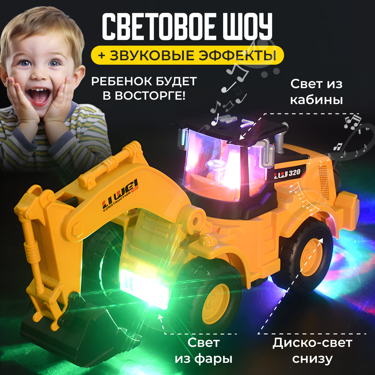 Экскаватор-погрузчик светящийся с музыкальными эффектами, машина диско шар, Discount Shop 1 199 ₽