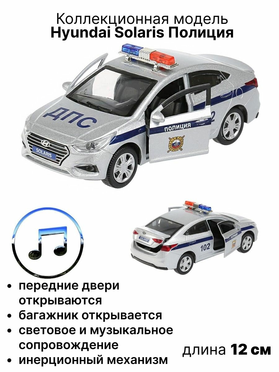 Отзывы на Машинка Технопарк HYUNDAI SOLARIS полиция серебряный 12 см свети звук SOLARIS2-12SLPOL-SR