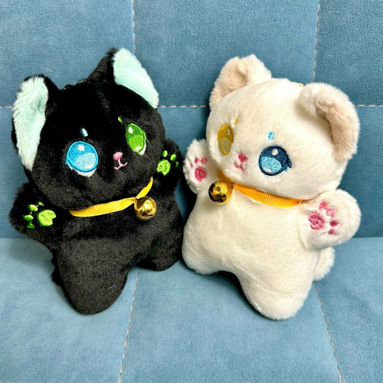 Отзывы на Брелок аниме котик мягкий белый и черный 2 в 1 14 см, игрушка кот аниме