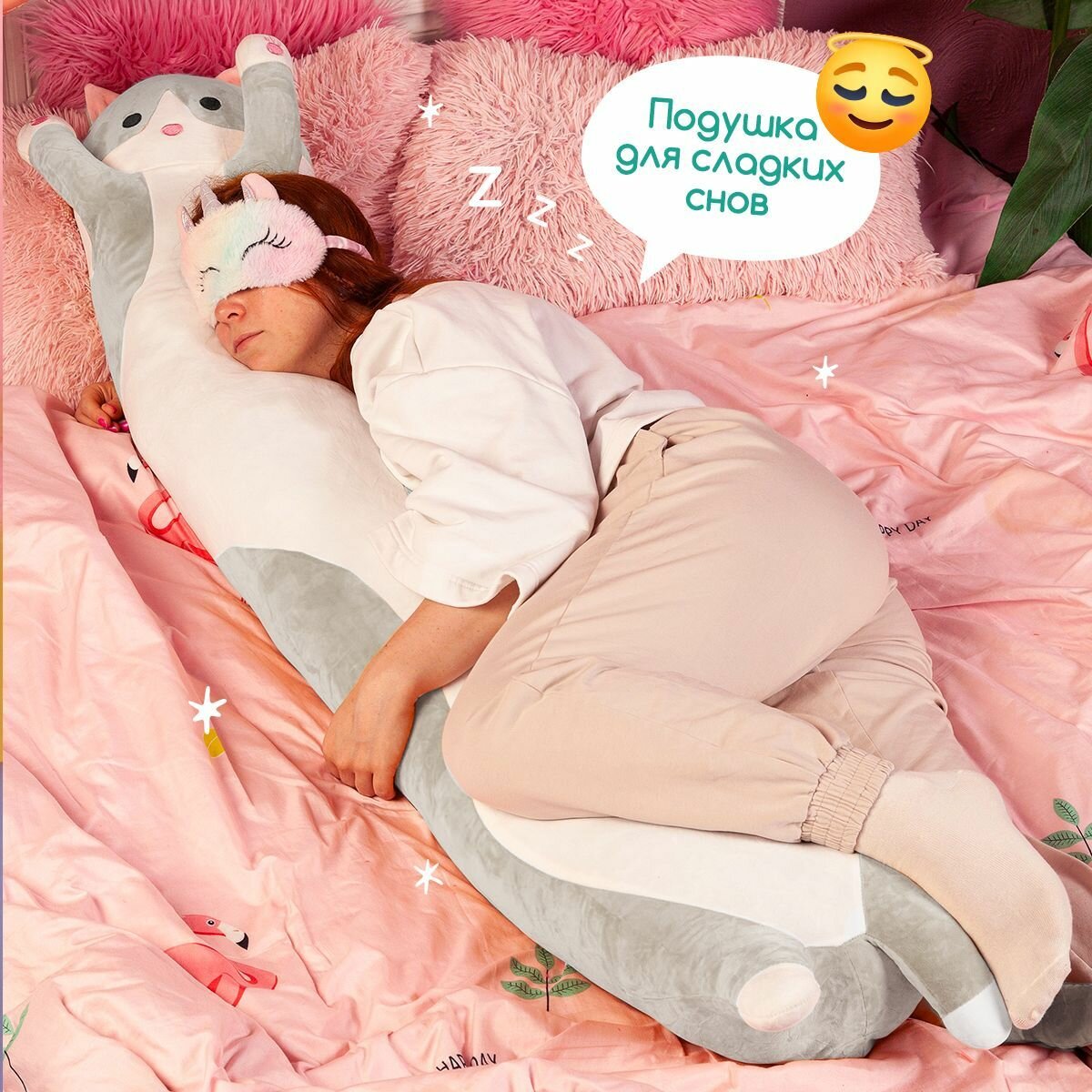 Мягкая игрушка подушка Totty toys длинный кот батон 160 см, серый информация: