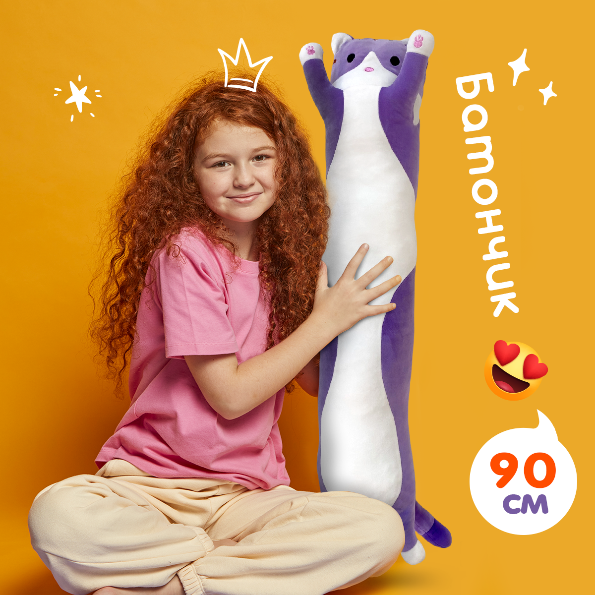 Отзывы на Мягкая игрушка подушка Totty toys длинный Кот-батон 90 см, фиолетовый