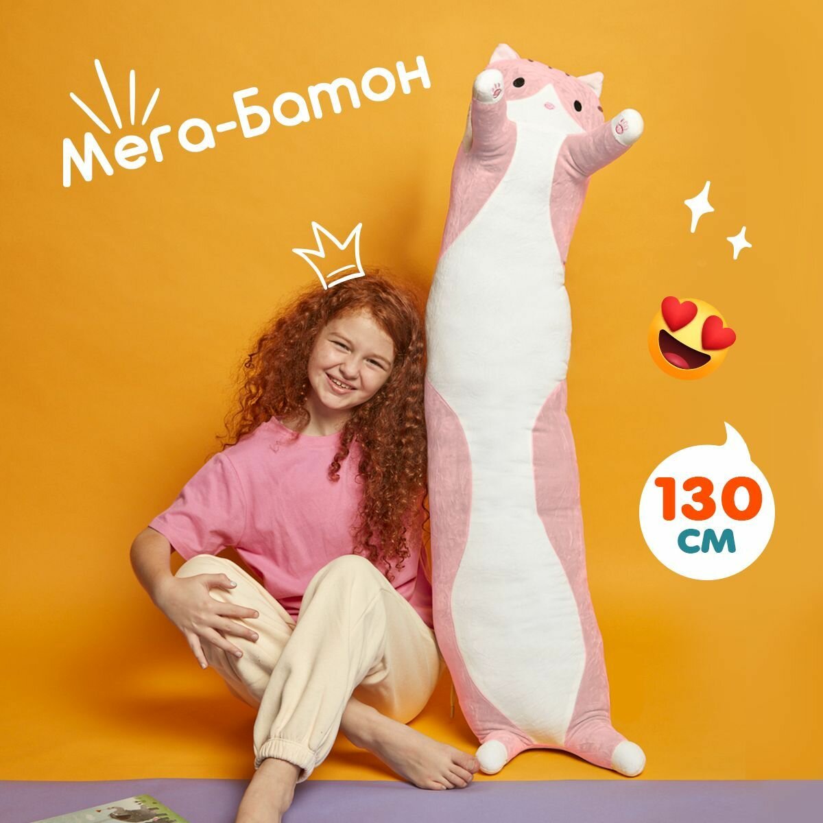 Мягкая игрушка подушка Totty toys длинный кот батон 130 см, розовый информация: