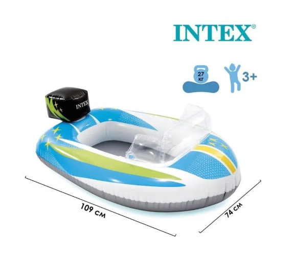 Лодочка надувная с сиденьем и спинкой, от 3-6 лет, Intex 59380 лодочка информация: