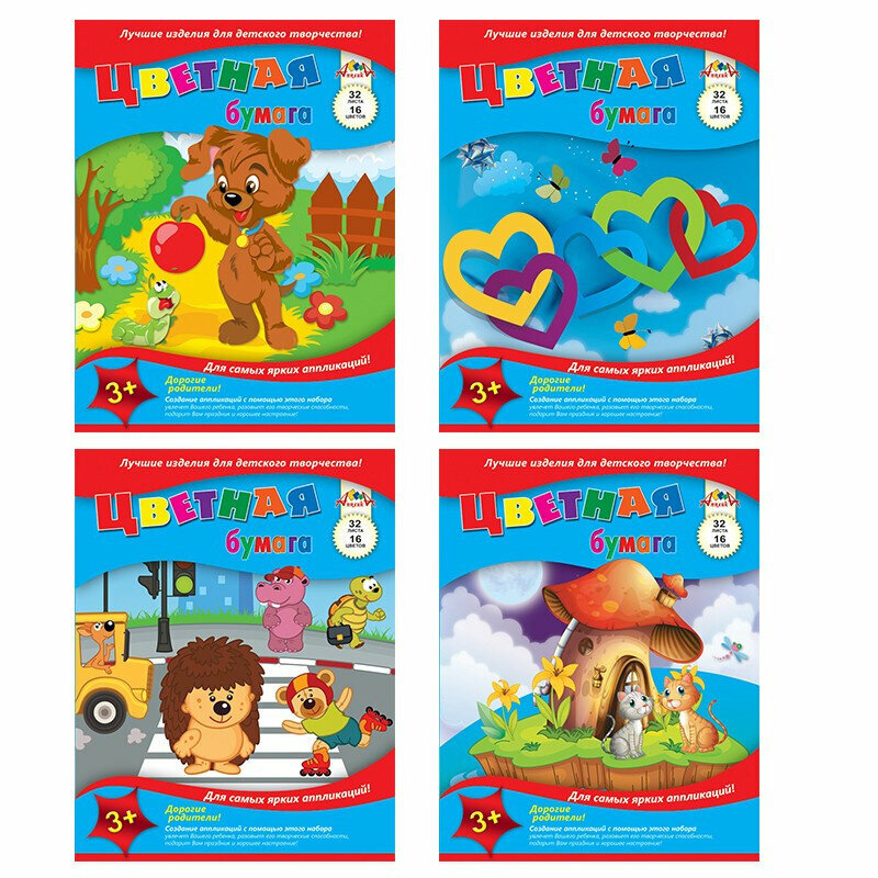 10 цен на Набор цветной бумаги Набор цветной бумаги А4 32 л. 16 цв. скоба, С2765-01,02,03,04,05, 633612