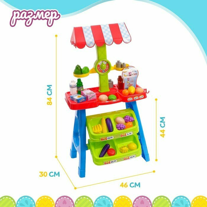 | В комплекте | весы, деньги, кассовый аппарат, корзина, прилавок, продукты |