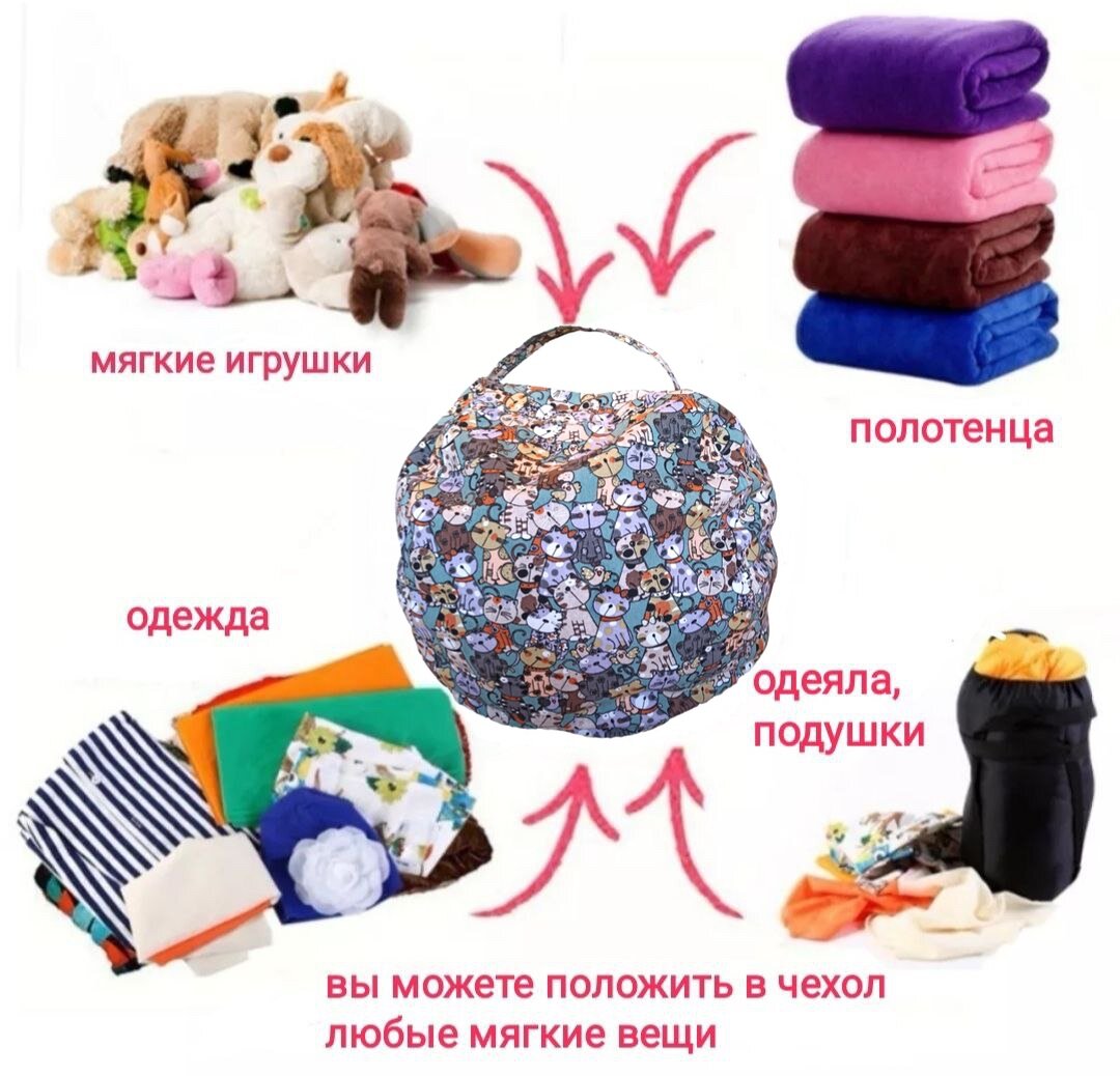 Отзывы на Сумка чехол пуфик для хранения мягких игрушек, диаметр 61 см. Котики