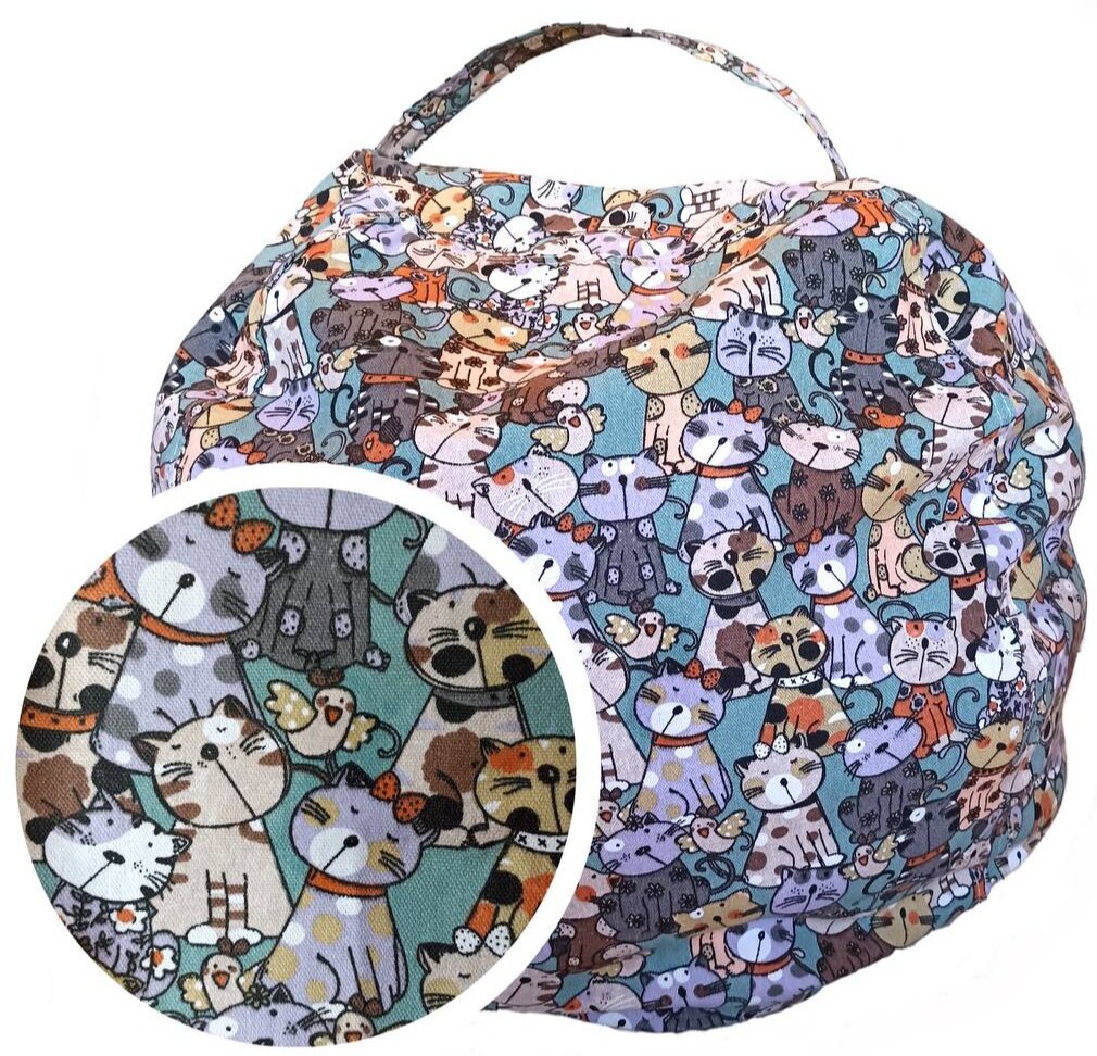Сумка чехол пуфик для хранения мягких игрушек, диаметр 61 см. Котики информация: