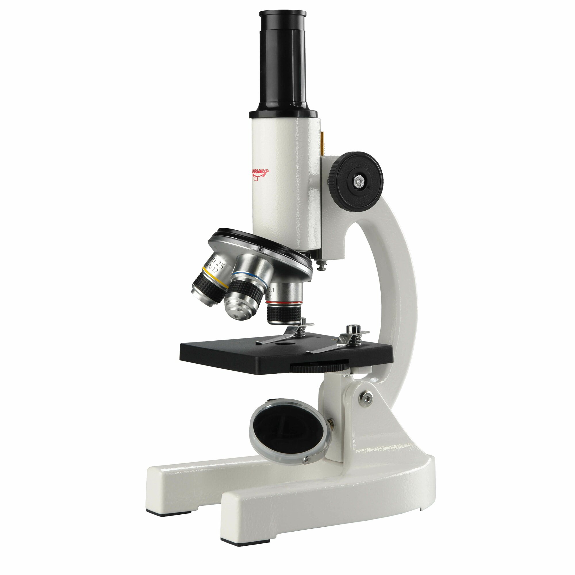 | Комплектация | Штатив и основание микроскопа с окулярным тубусом и револьвером на 3 гнезда Зеркальце в оправе с держателем Столик 90х90 с диском диафрагм и клеммами Объектив - ахромат 4х/0.1 Объектив - ахромат 10/0.25 Объектив - ахромат S40/0.65 Окуляр 10х/18 Окуляр 20х/11 Кейс текстильный Главная книга юного биолога |