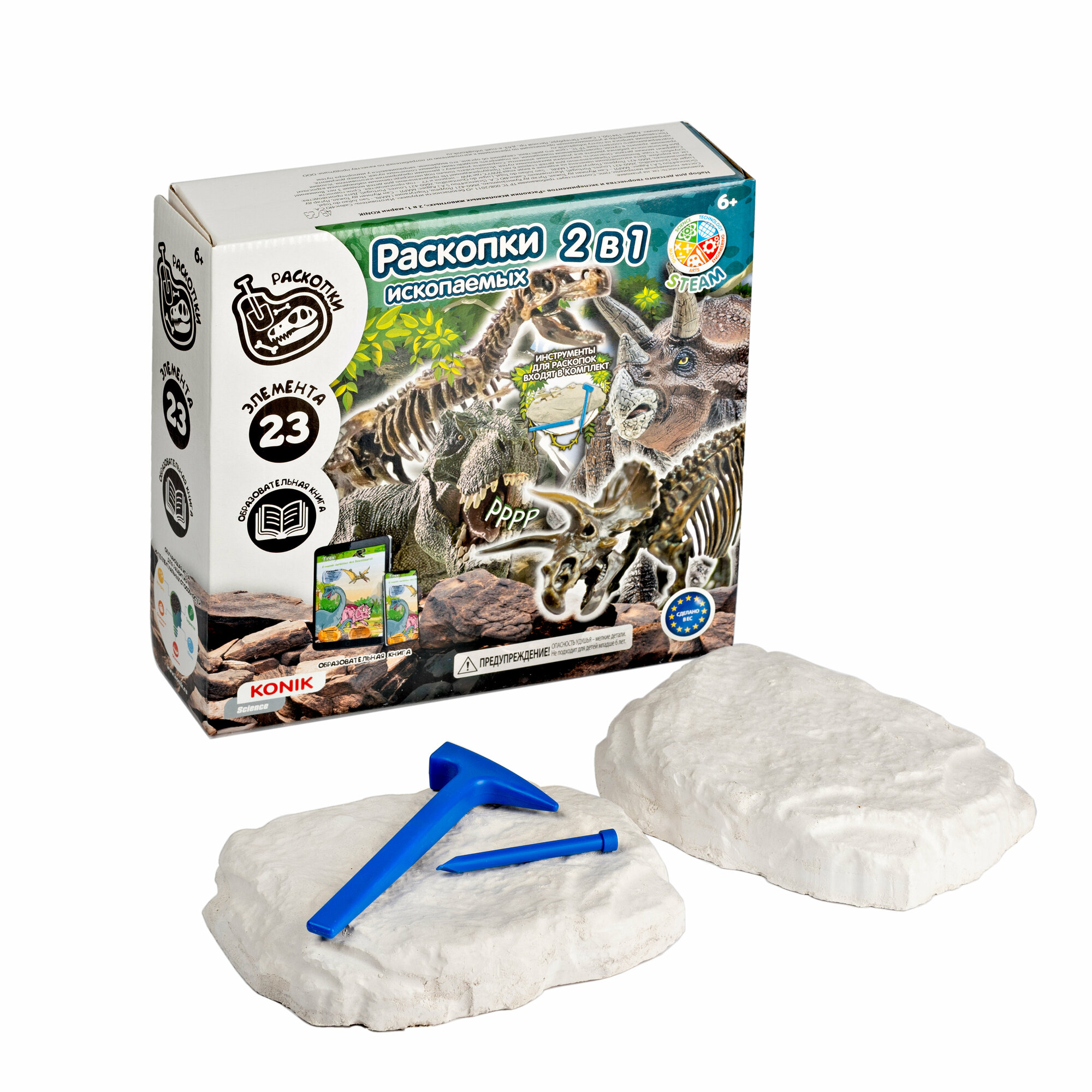 Набор для экспериментов KONIK Science «Раскопки ископаемых животных 2 в 1» информация: