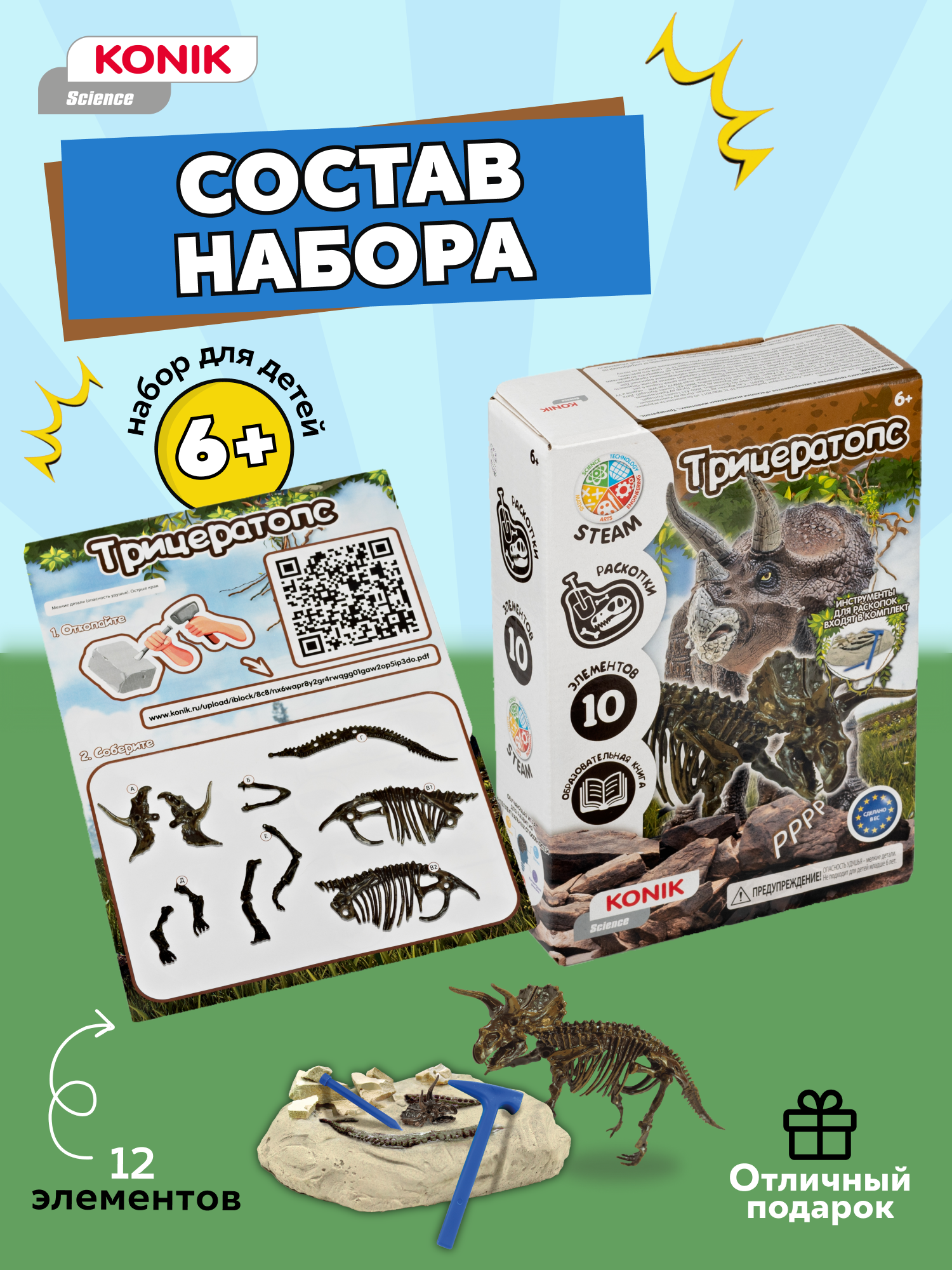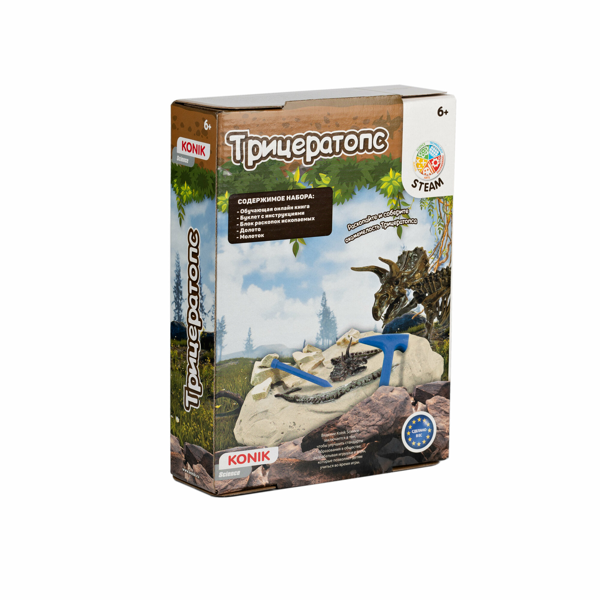 Набор для экспериментов KONIK Science «Раскопки ископаемых животных. Трицератопс» информация: