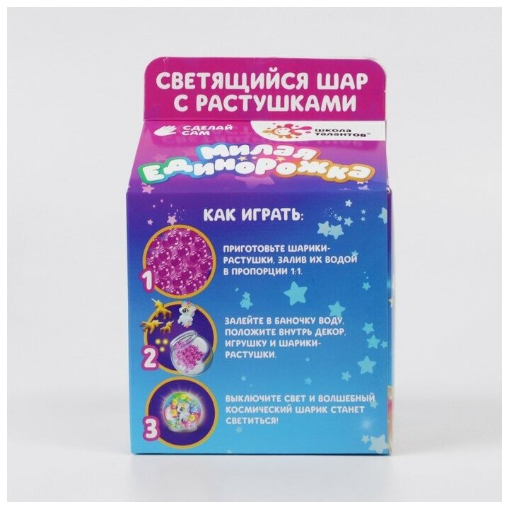Набор для опытов Школа талантов "Волшебный шар с гидрогелем: Милая единорожка" информация: