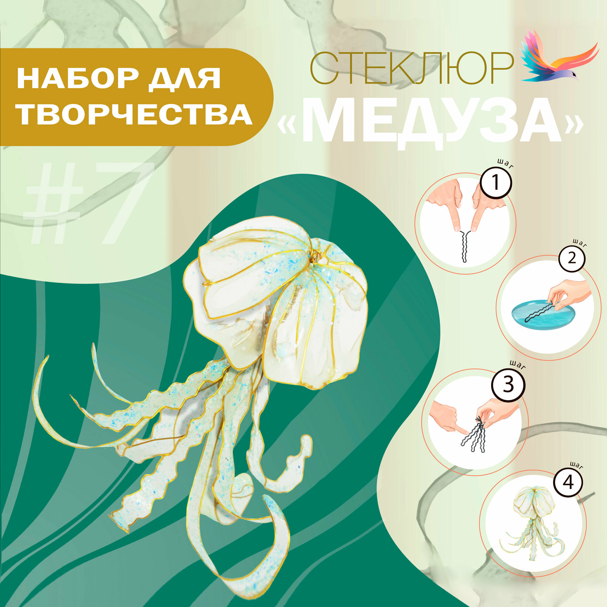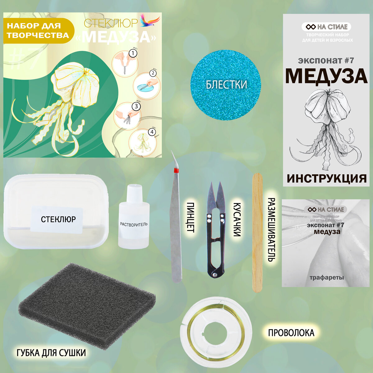 Набор для творчества "Медуза" для создания дизайнерской декоративной статуэтки из инновационной смолы Стеклюр информация: