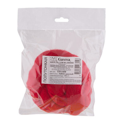 Шерсть для валяния "Gamma" TFS-050 100% полутонкая шерсть 50 г №0042 красный
