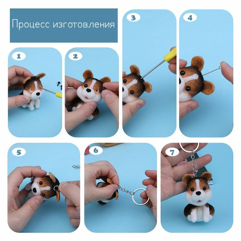 Набор для валяния, игрушка из шерсти Собаки, для творчества, для фелтинга, 7 штук информация:
