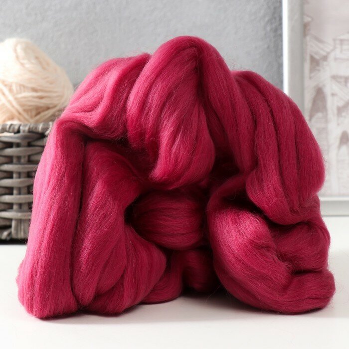 10 цен на Шерсть для валяния 100% полутонкая шерсть 50 гр (088, брусника)