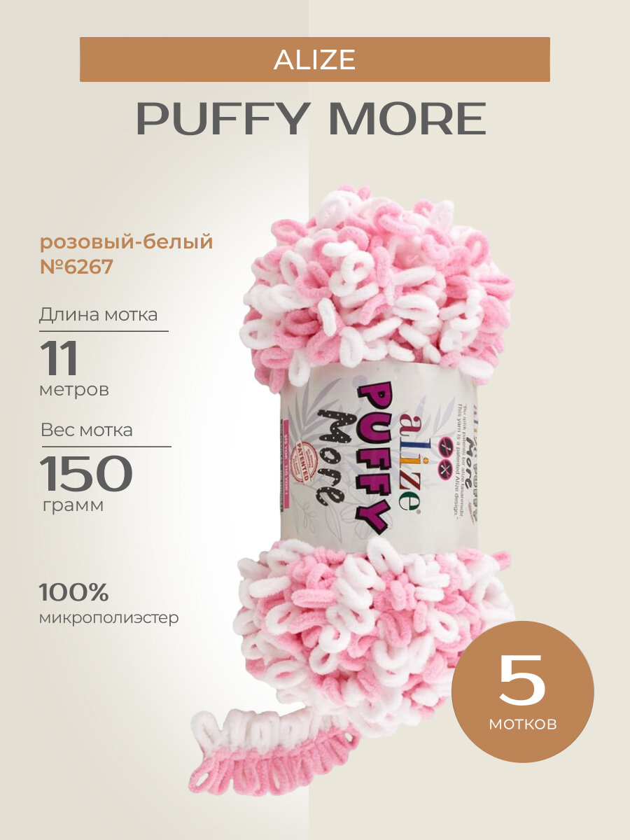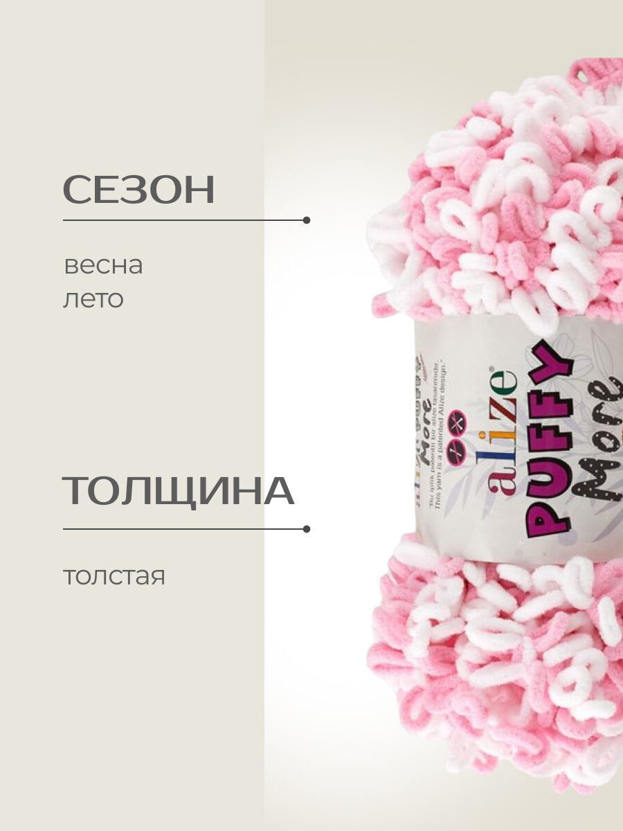 10 цен на Пряжа Alize Puffy More белый-розовый (6267), 100%микрополиэстер, 11.5м, 150г, 5шт
