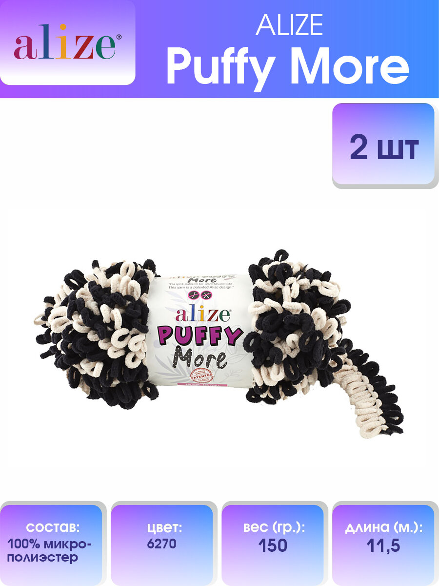 Пряжа Alize Puffy More экрю-черный (6270), 100%микрополиэстер, 11.5м, 150г, 1шт информация: