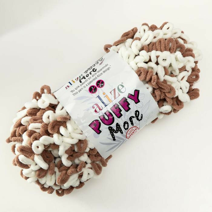 Пряжа Alize Puffy More бежевый-коричневый (6287), 100%микрополиэстер, 11.5м, 150г, 2шт