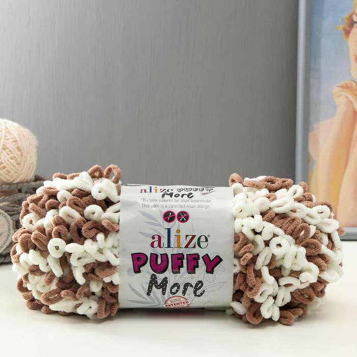 10 цен на Пряжа Alize Puffy More молочный-какао (6261), 100%микрополиэстер, 11.5м, 150г, 1шт