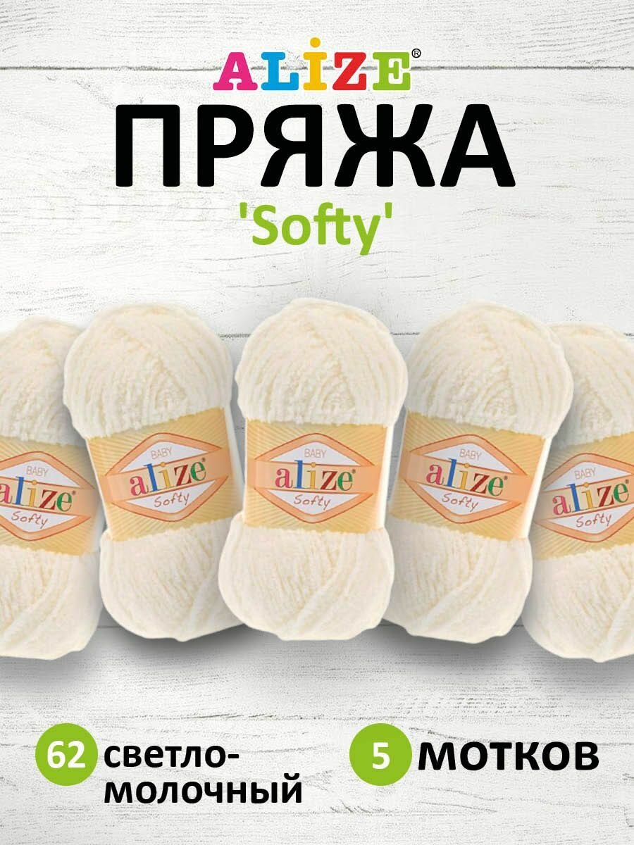 10 цен на Пряжа Alize Softy светло-молочный (62), 100%микрополиэстер, 115м, 50г, 5шт