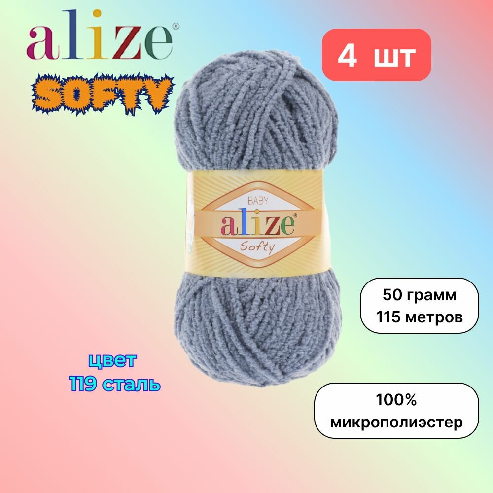 Пряжа Alize Softy Ализе софти Сталь (119) 4 мотка 50 г / 115 м (100% микрополиэстер) информация: