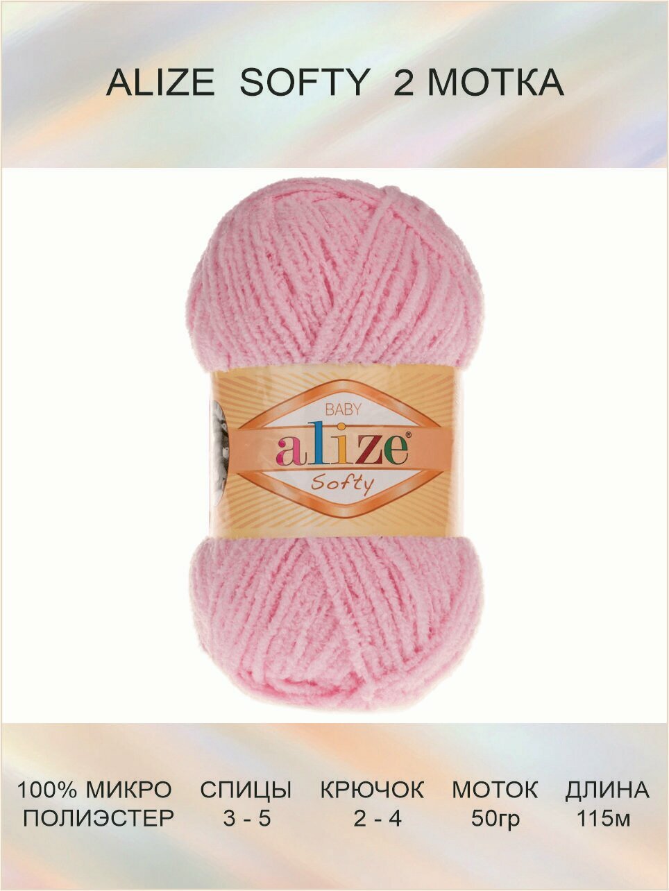 Пряжа Alize Softy детский розовый (185), 100%микрополиэстер, 115м, 50г, 2шт информация: